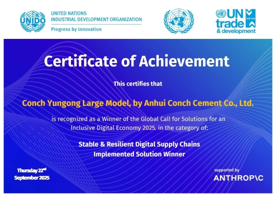 近日,海螺集團下屬“安徽海螺水泥股份有限公司——海螺云工大模型”在聯合國工業發展組織等機構于2025年7月發起...